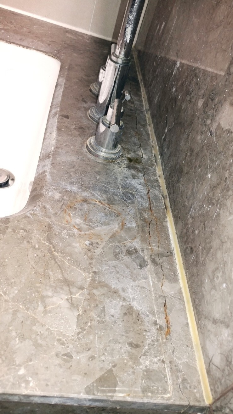 대리석에 산성제품을 잘못 사용하셔서