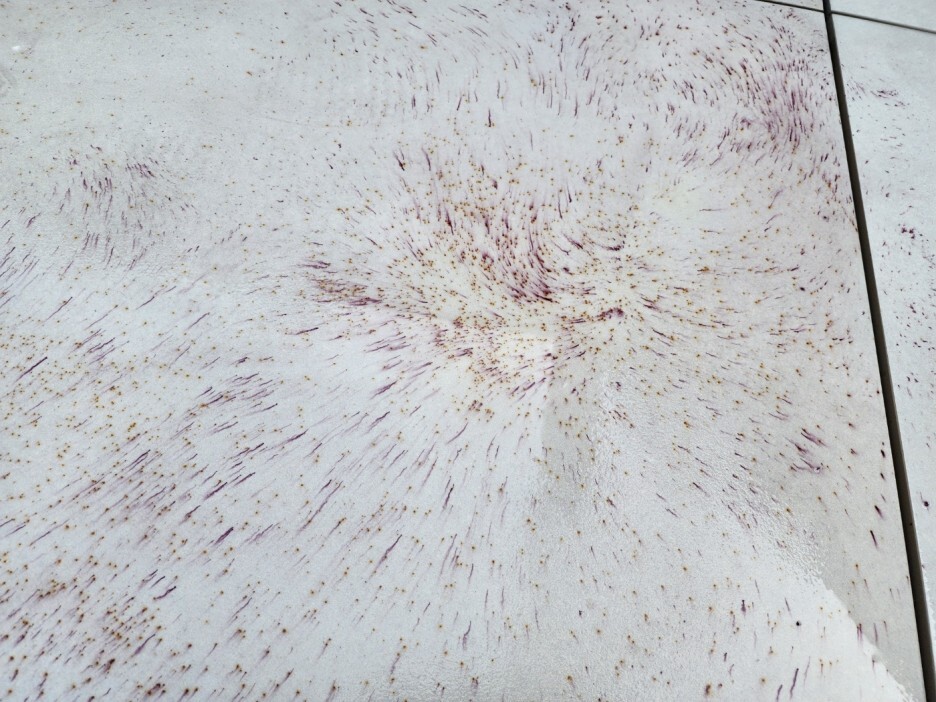 녹자국들이 보라색으로 변하고있습니다