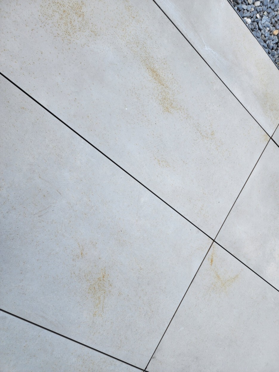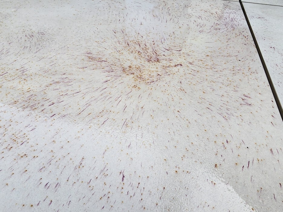 표면에 남아있던 철가루 성분에 의해서 석재표면 외부에