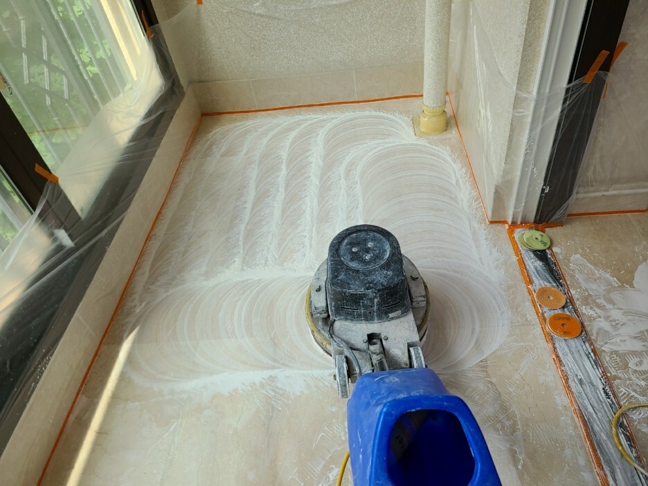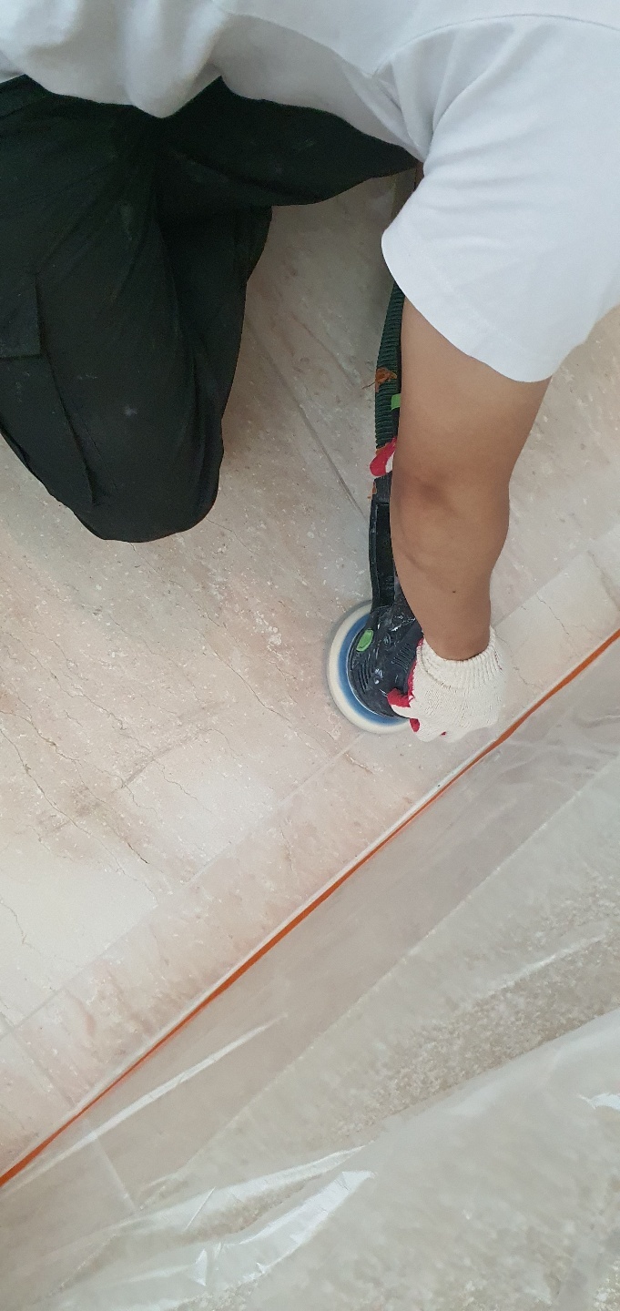 연마 작업 중 찍은 줄눈 사진입니다