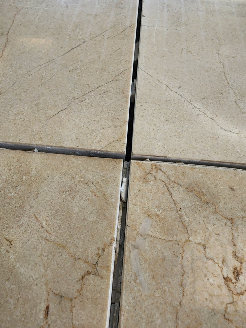 복합 대리석 타일 들뜸 단차 맞추는 작업! 복합타일 단차제거