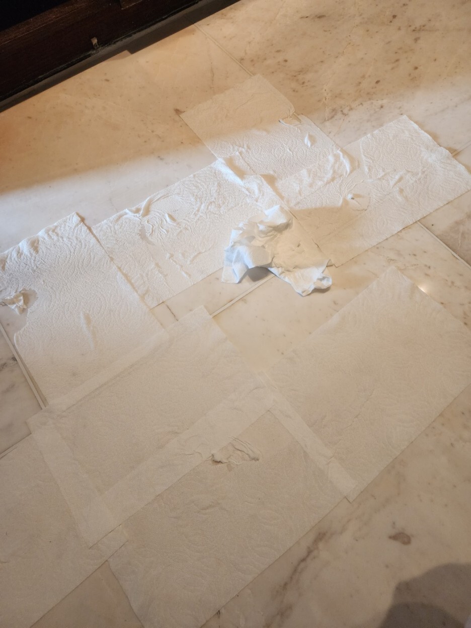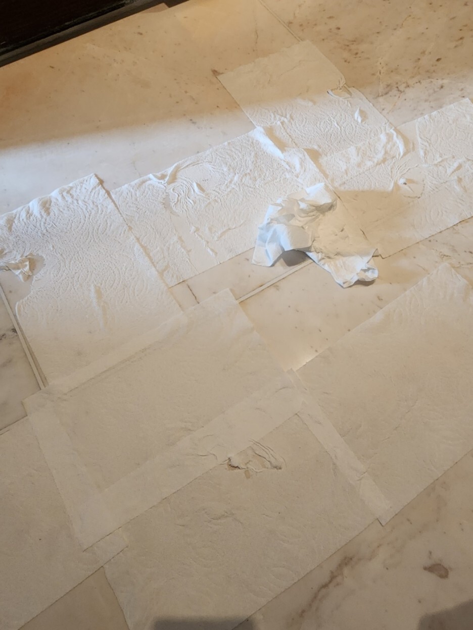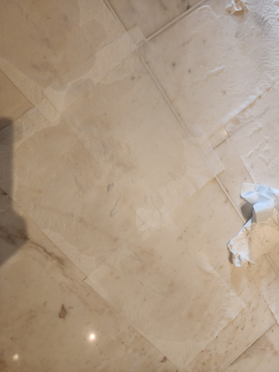하얀색계열의 대리석이 물을 많이 먹으면서