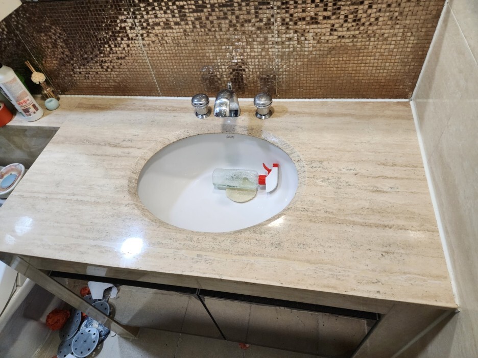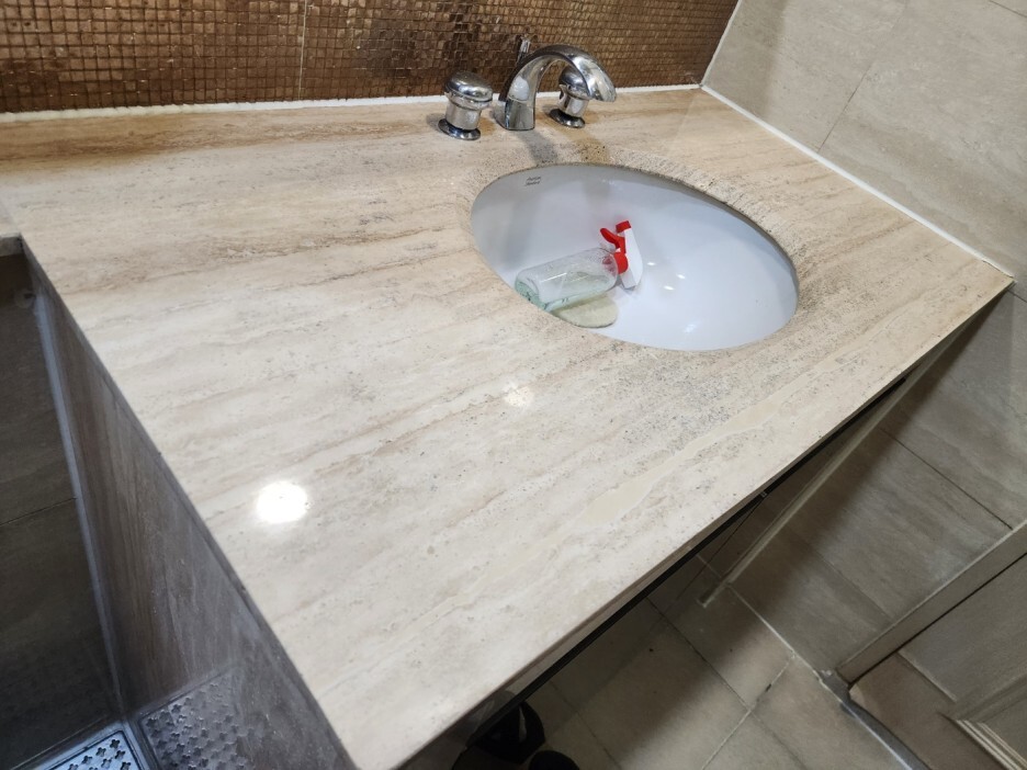 트래버틴이기 때문에 구멍들이 송송 나있는 상태입니다
