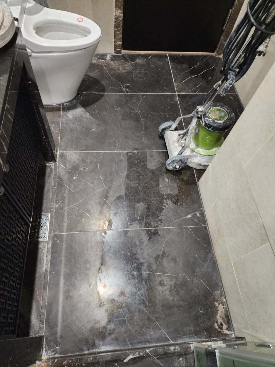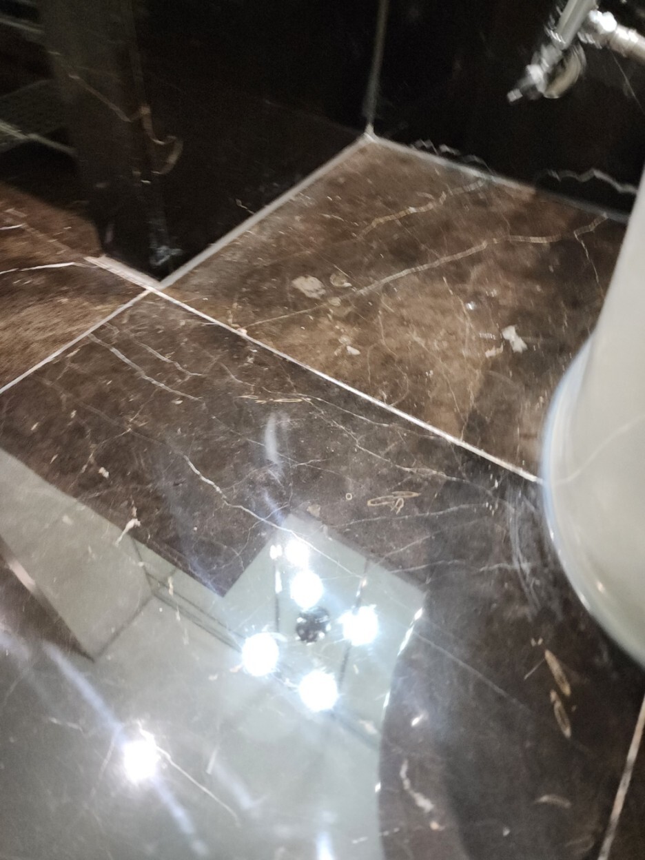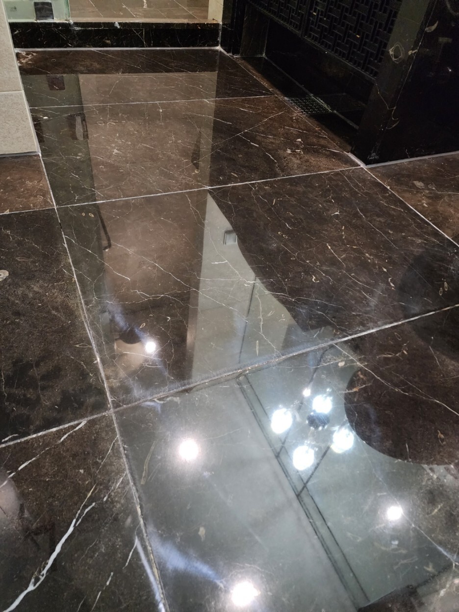 진한 계열 천연대리석의 연마광택 후에는