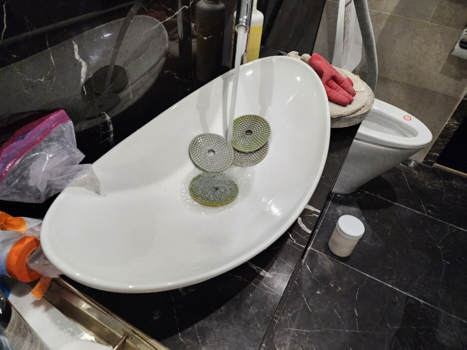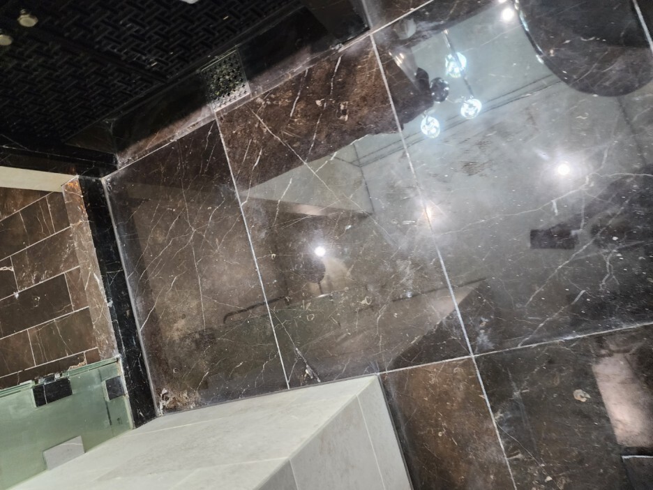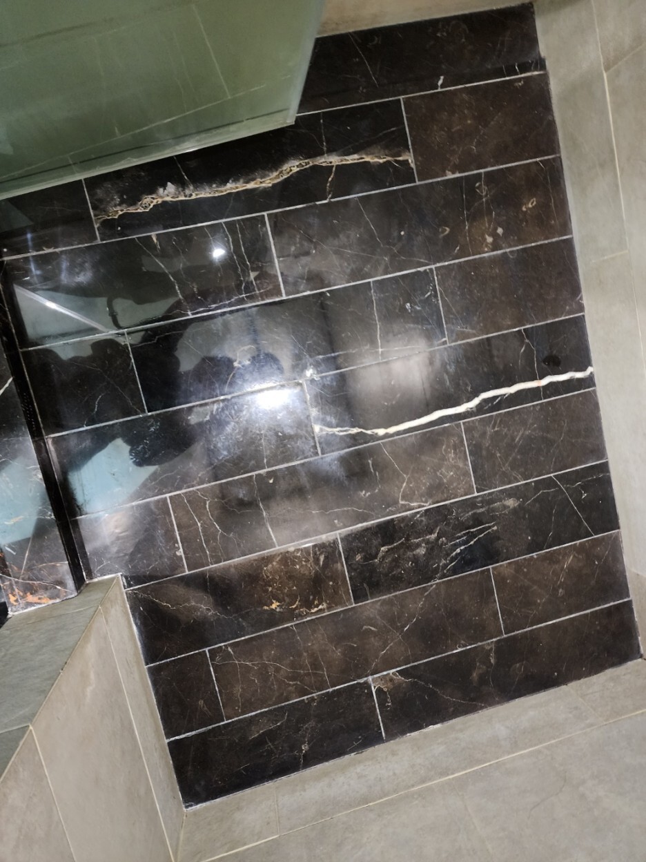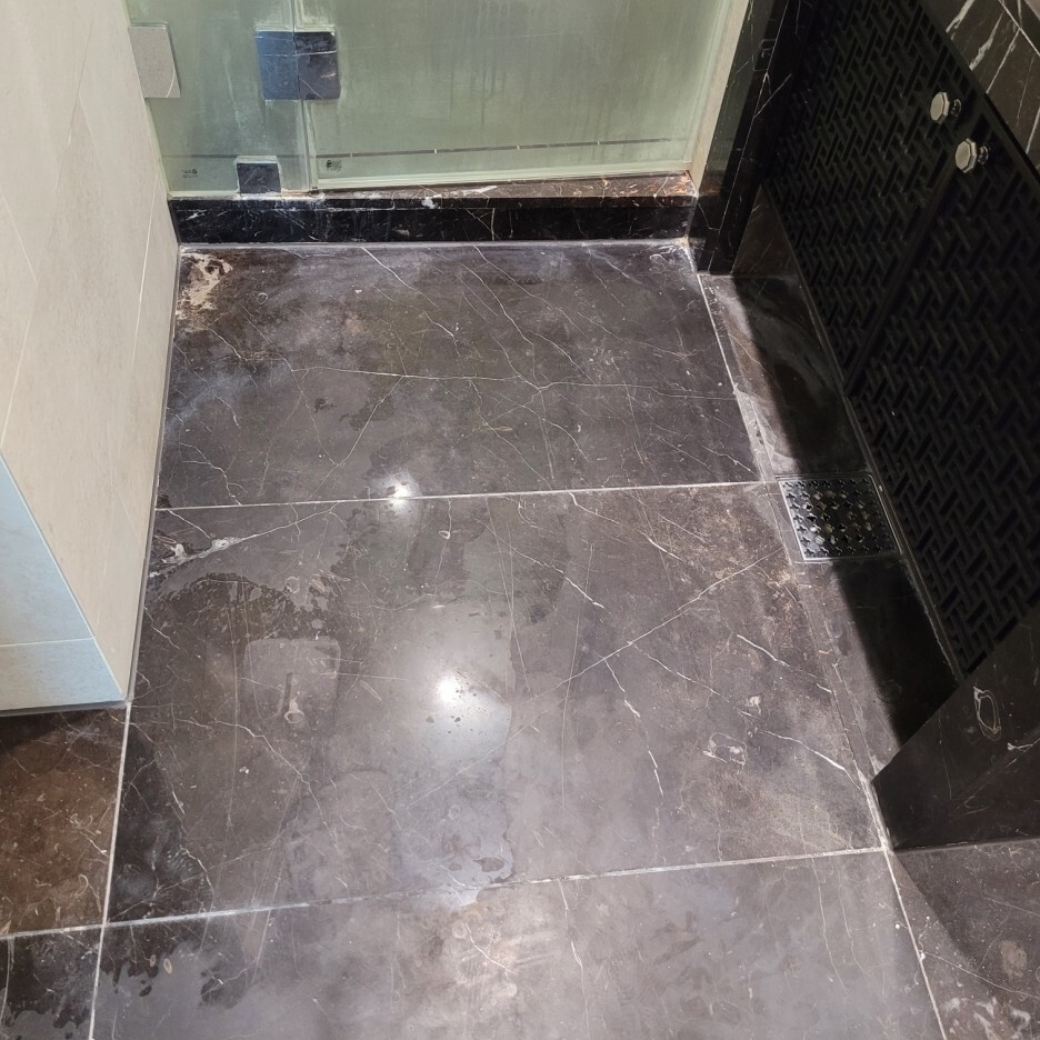 진한 계열 천연대리석의 연마광택 후에는