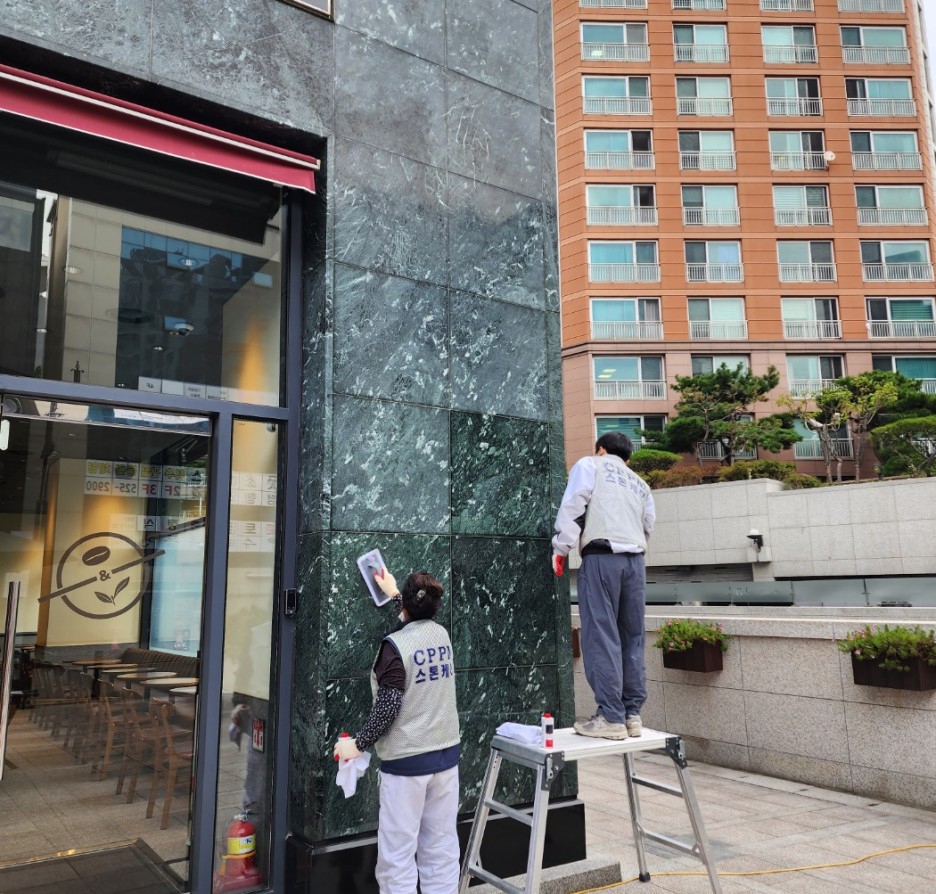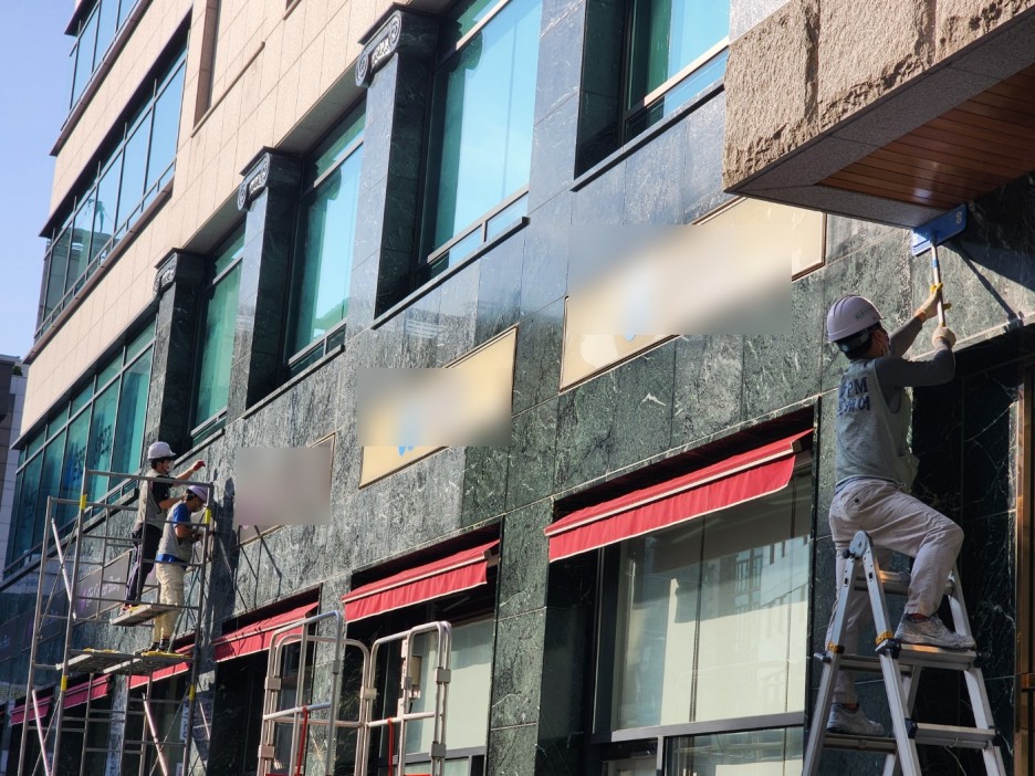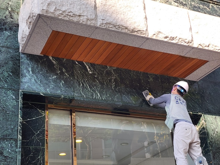 외벽 석재가 손상 및 오염이 되지 않도록