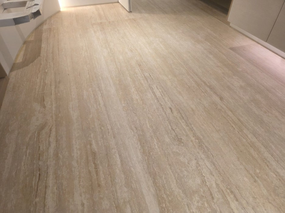 트래버틴으로 시공된 현관 바닥의