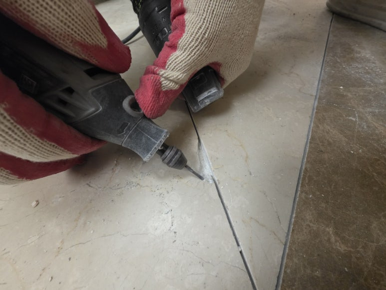 우선 줄눈 제거 작업 및